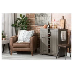 Valet Buffet With Wine Storage Weathered Oak And Black – South Shore