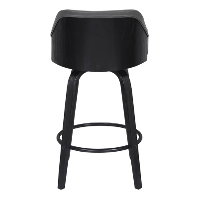 The Armen Living Alec contemporary swivel barstool is a practical, yet stylish piece designed for both comfort and aesthetic pleasure. The Alec’s durable Black Brushed wood exterior finds good company with the barstool’s sleek Gray Faux Leather upholstered seat and back. The Alec’s Black Powder Coat finished footrest beautifully compliments the elegant, straight leg design of this impressive stool. The 360-degree swivel action allows for maximum user mobility while seated. Featuring a foam padded, low back design, the Alec offers optimal lumbar support without compromising on the stool’s contemporary appearance. The stylish Alec is available in 2 industry standard sizes; 26-inch counter and 30-inch bar height. Also available in walnut wood finish with brown faux leather. We stand by the quality, the craftsmanship, and the integrity of our product by offering a 1-year warranty for all our products. We want our customers to enjoy our product and we will always be there to help with our top-notch customer service support.