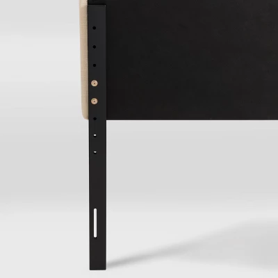 A classic crown silhouette with a splash of glam. Featuring a dual nail head trim outline and soft button tuft detail, this design is the definition of trend-setting chic. Constructed of a solid wood frame, this foam padded headboard is adjustable to suit the height of your bed and to your liking, while the low-profile supporting legs hide discreetly behind your mattress to complete the look of any bedroom.