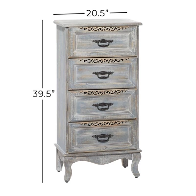 Old wood look fits well with farmhouse, vintage, shabby chic, and French provincial interiors. A practical yet stylish upgrade that instantly elevate the look of your room. Maintain a clutter free zone and stay organize with this chic cabinet. Designed with rubber stoppers at the base that prevent scratching furniture and table tops, as well as sliding around. Suitable for indoor use only. Item has maximum weight limit of 75 lbs. Vintage theme.
