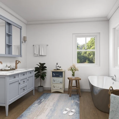 - •With an overall distressed white finish, it highlights brushed Aegean and sky blue drawer finish